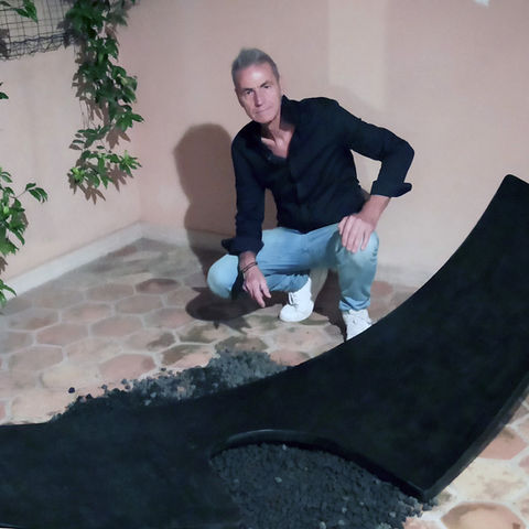 La Zattera dell'Esteta è parte del ciclo dei Fossili, produzione scultorea di grande formato realizzata in lamiera di acciaio verniciato. (Il modello esposto è in legno).